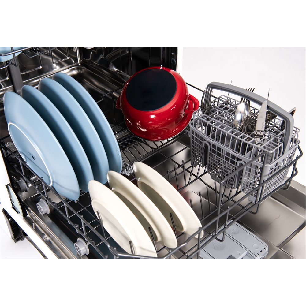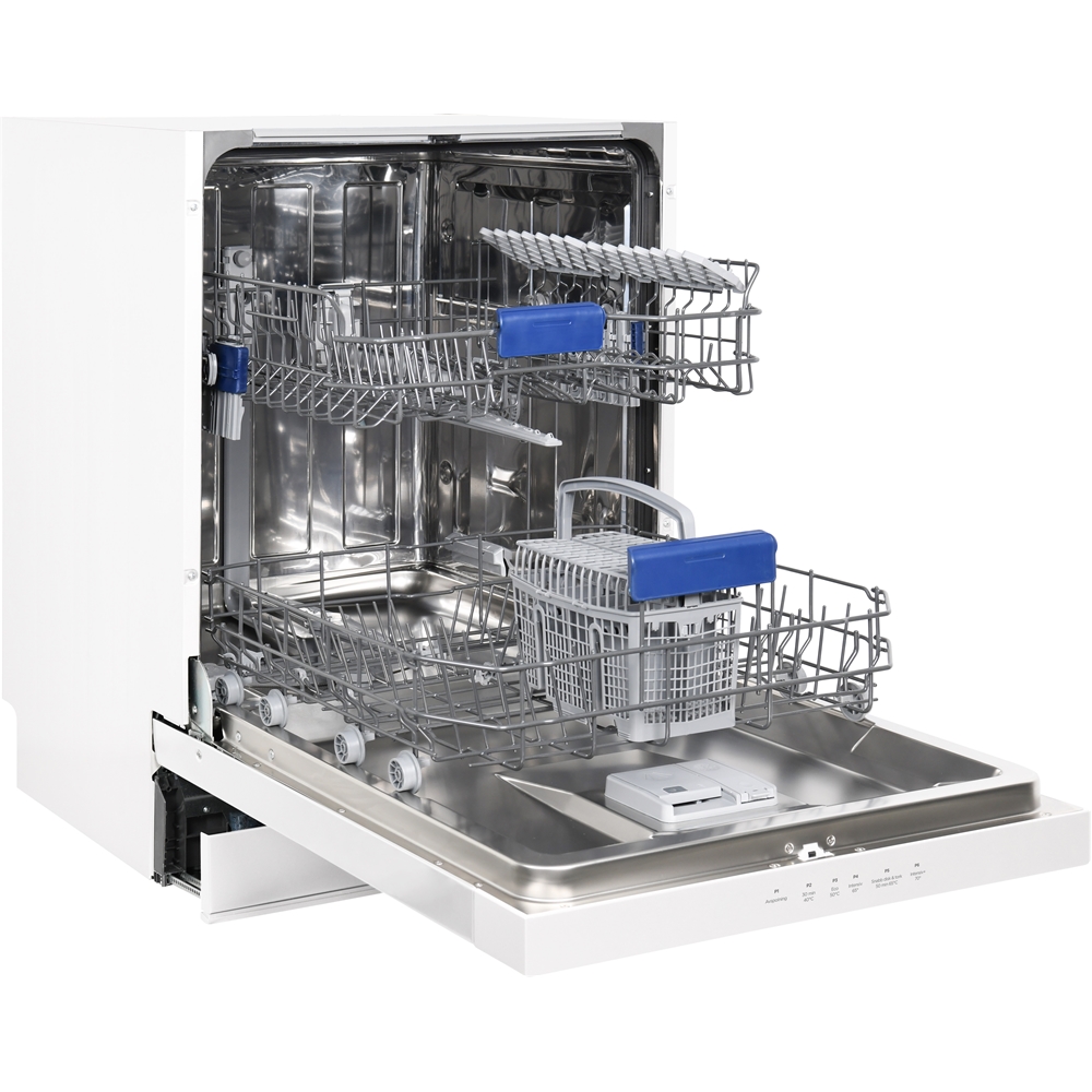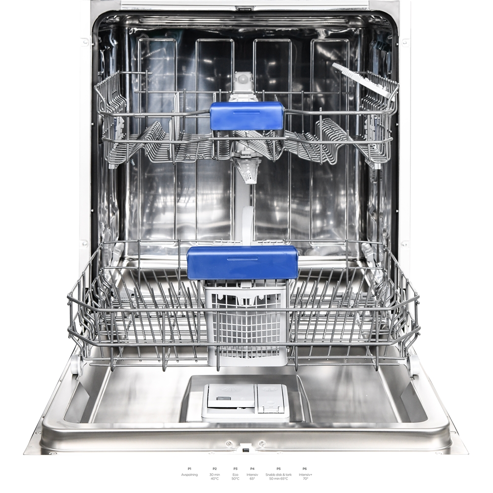 En diskmaskin som rymmer 12 kuvert och som har låg ljudnivå,45 dB, så du kan sätta igång maskinen när du vill utan att bli störd. Den har intensivdisk, snabb program, flexibla korgar med höj och sänkbar överkorg för att du ska få plats även för högre tallrikar och glas. Energiklass E