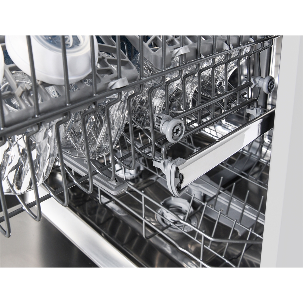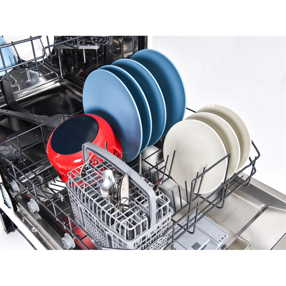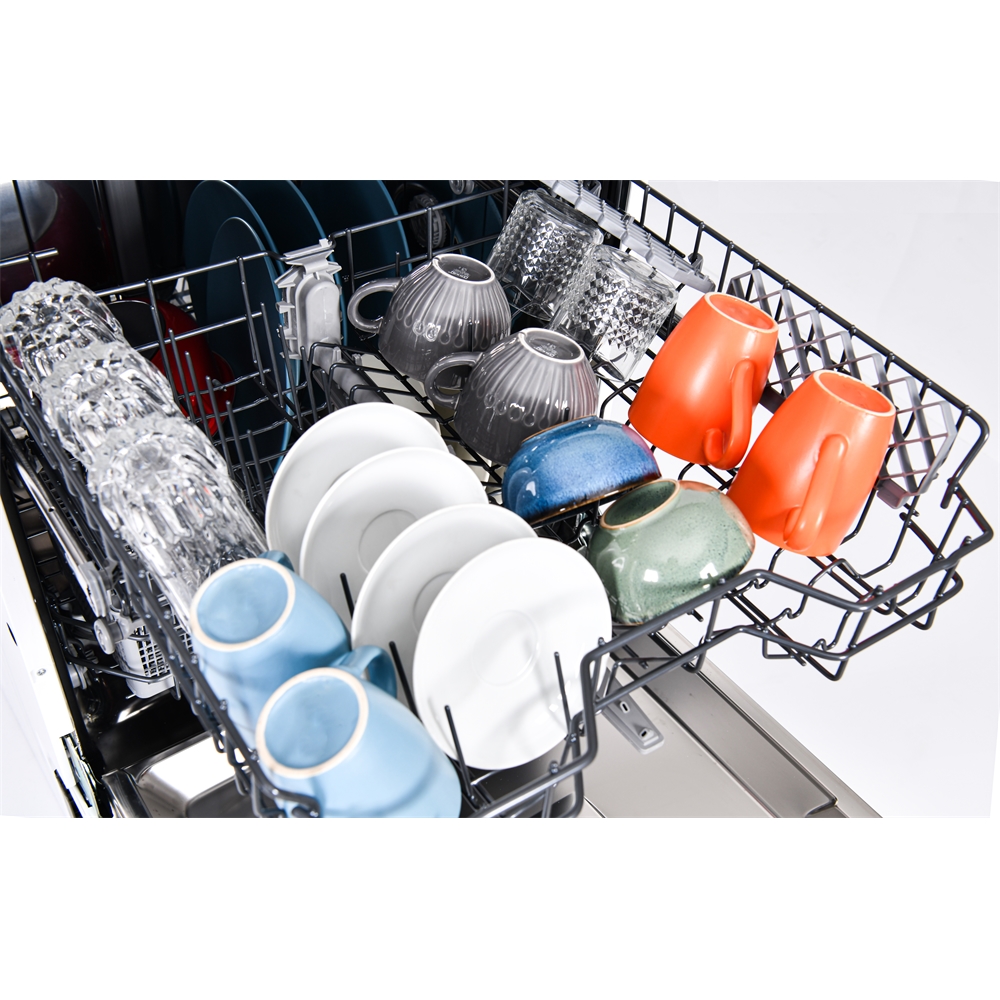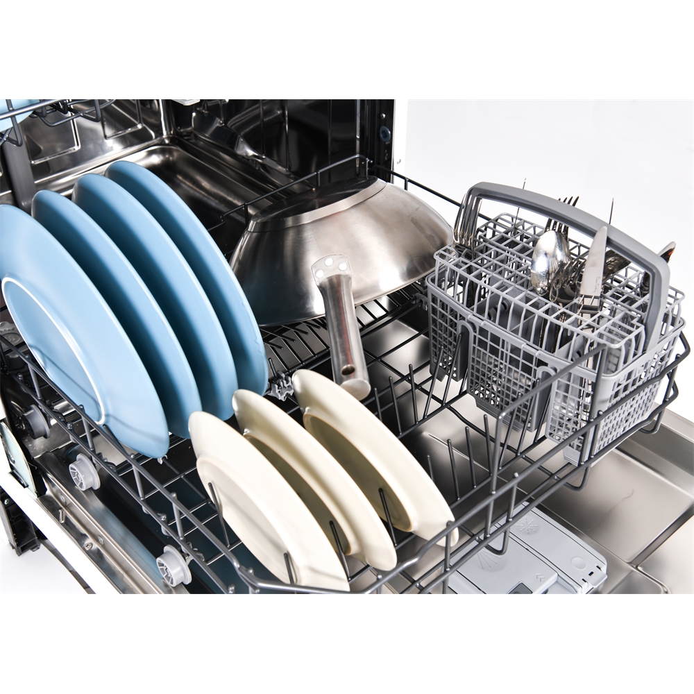 En diskmaskin som rymmer 12 kuvert och som har låg ljudnivå,45 dB, så du kan sätta igång maskinen när du vill utan att bli störd. Den har intensivdisk, snabb program, flexibla korgar med höj och sänkbar överkorg för att du ska få plats även för högre tallrikar och glas. Energiklass E