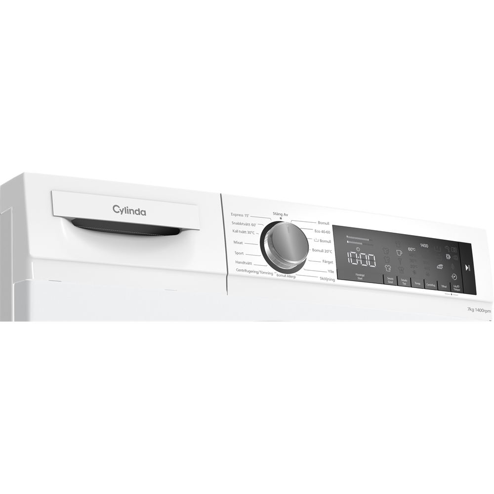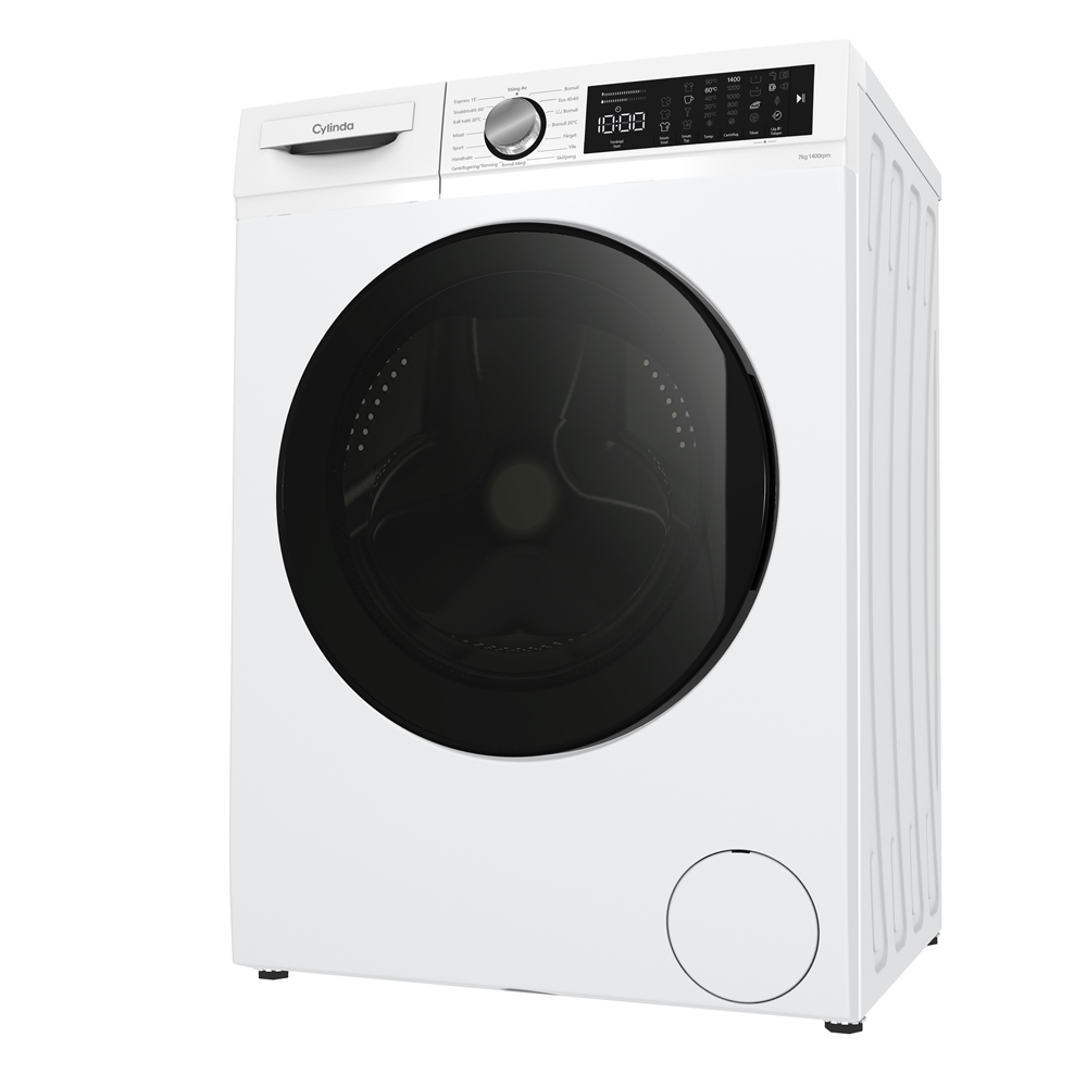 En energisnål tvättmaskin med 1400 varv centrifugering som rymmer 8 kg tvätt. Induktionsmotor ger en tystare gång och en tydlig textdisplay visar allt du behöver veta om temperatur, varvtal och tvättid till och med vatten och energiförbrukning. Bland de 15 programmen kan du välja mellan ett hygienprogram (bomull allergi), sportkläder, expresstvätt 15 min, mörka kläder och använda tillval som fördröjd start, skynkelfritt, eco eller tidspar funktion. Energiklass A